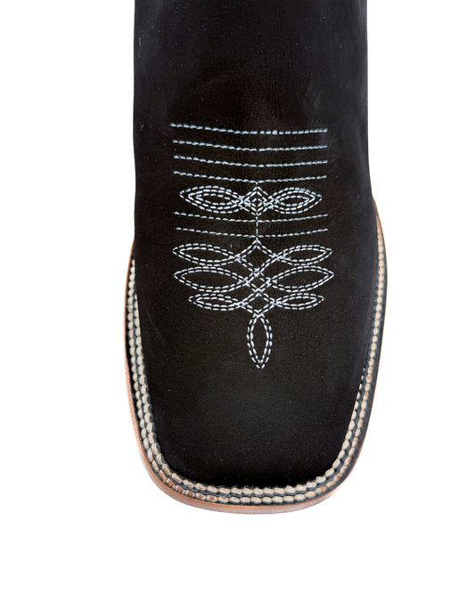 Botín Bulldog Negro Nobuck con Suela de Cuero