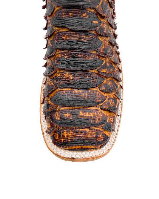 Bota Bulldog En Piel Genuina Pitón Café Chocolate