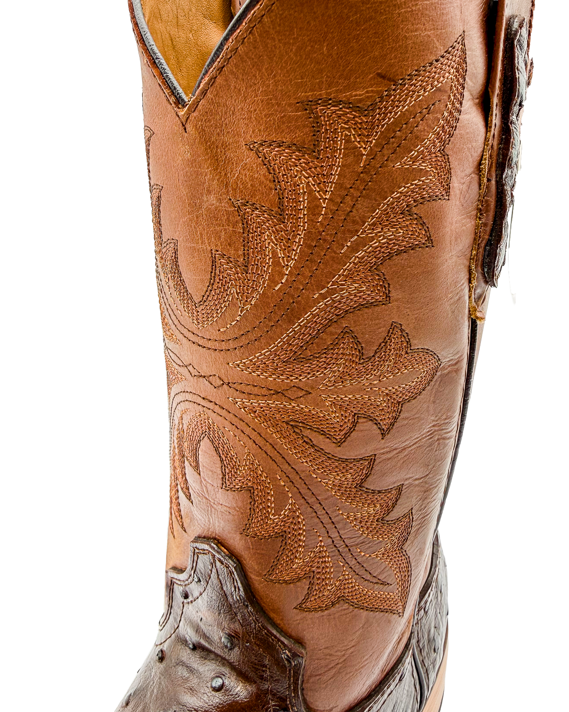 Nuestra exclusiva Bota Bulldog Avestruz Chocolate elaborada en piel genuina de res con acabado tipo avestruz de la más alta calidad y un tubo bordado que le da un toque único y elegante. Su textura especial y su tono chocolate profundo destacan por su presencia y estilo western auténtico.