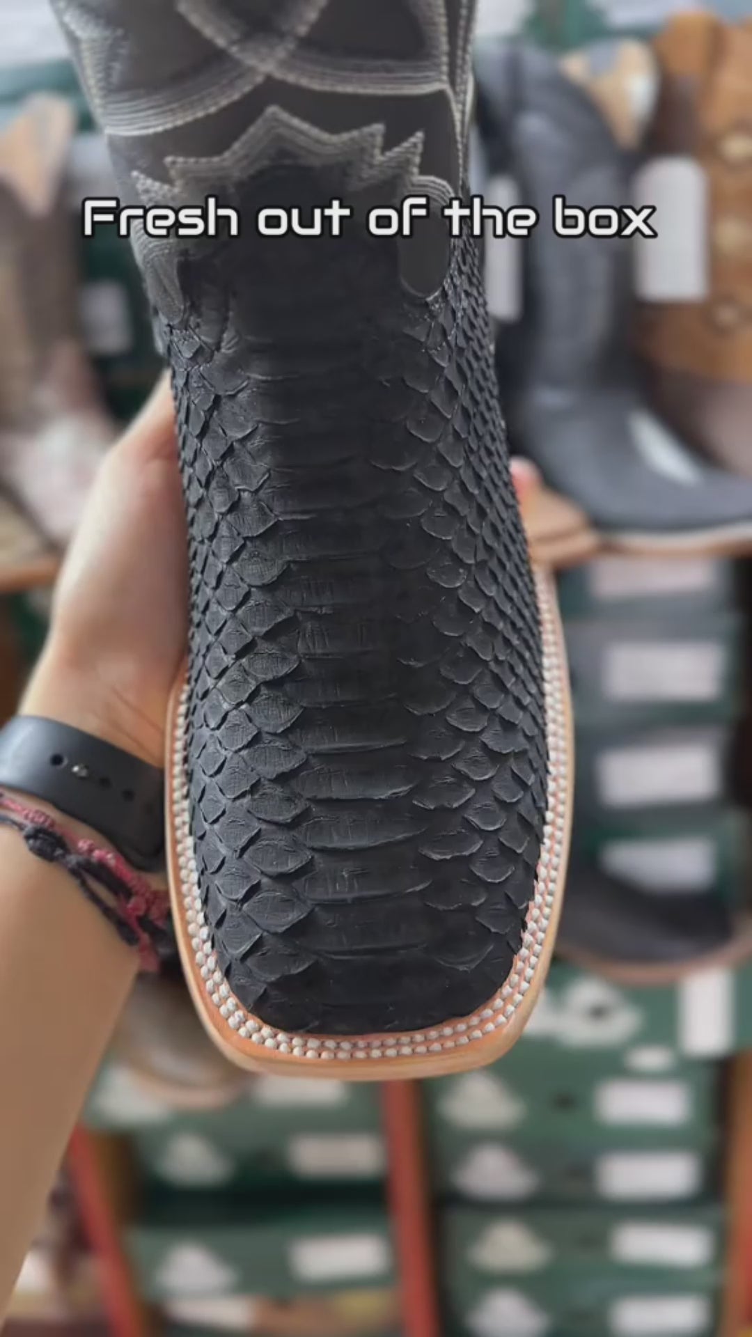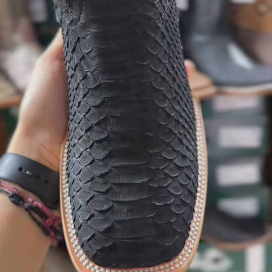 Nuestra exclusiva Bota Bulldog en Piel Genuina Pitón Negro elaborada en piel de pitón 100% original de la más alta calidad, que resalta por su diseño exótico y elegante, brindando un estilo único y sofisticado.