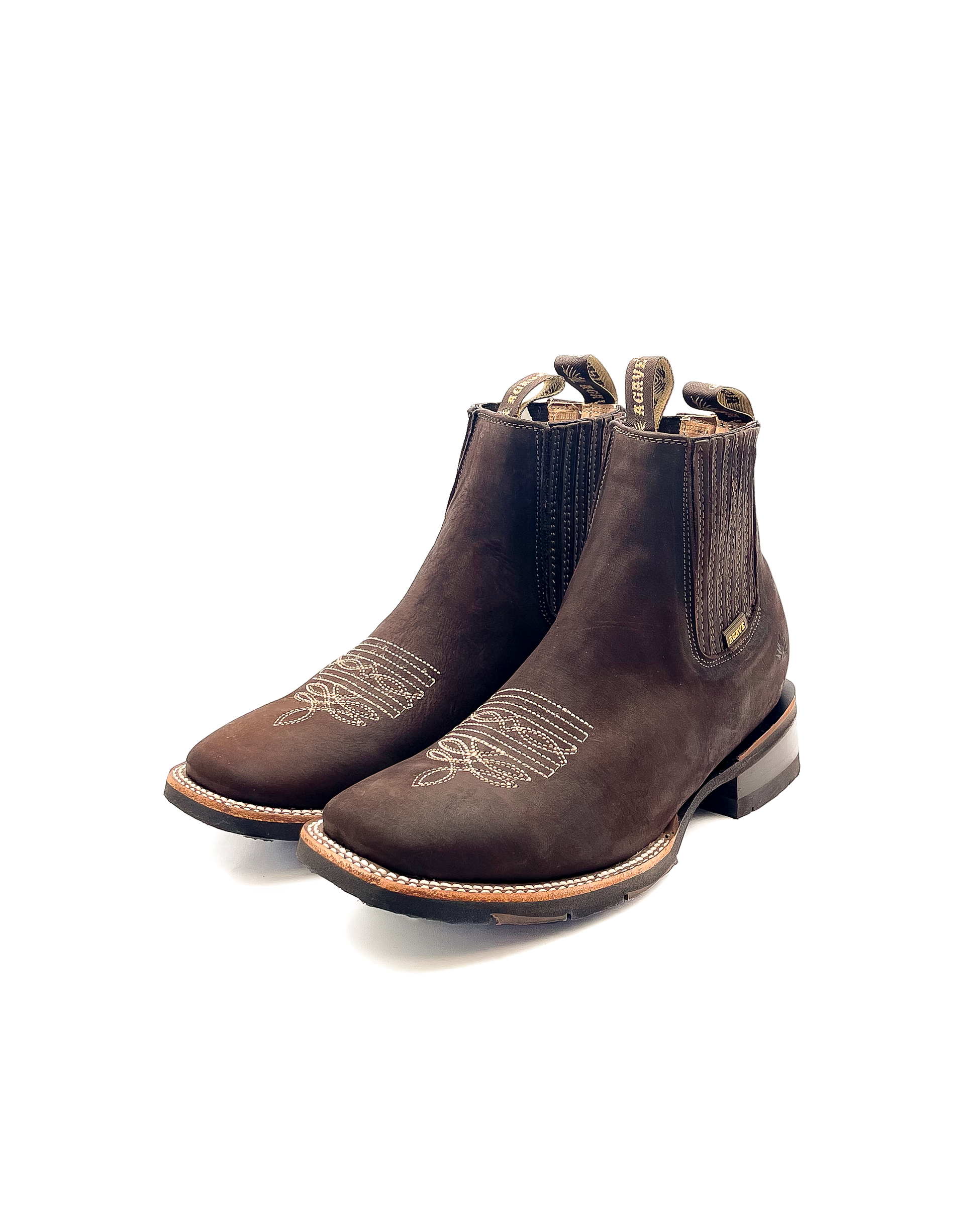 Nuestro exclusivo Botín Bulldog Café Rojizo elaborado en piel de res 100% original de la más alta calidad y elásticos a los costados que le dan un toque único y distintivo.