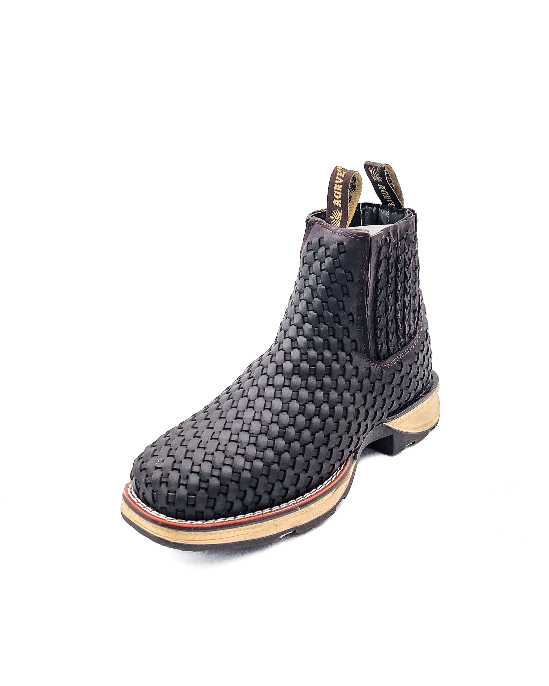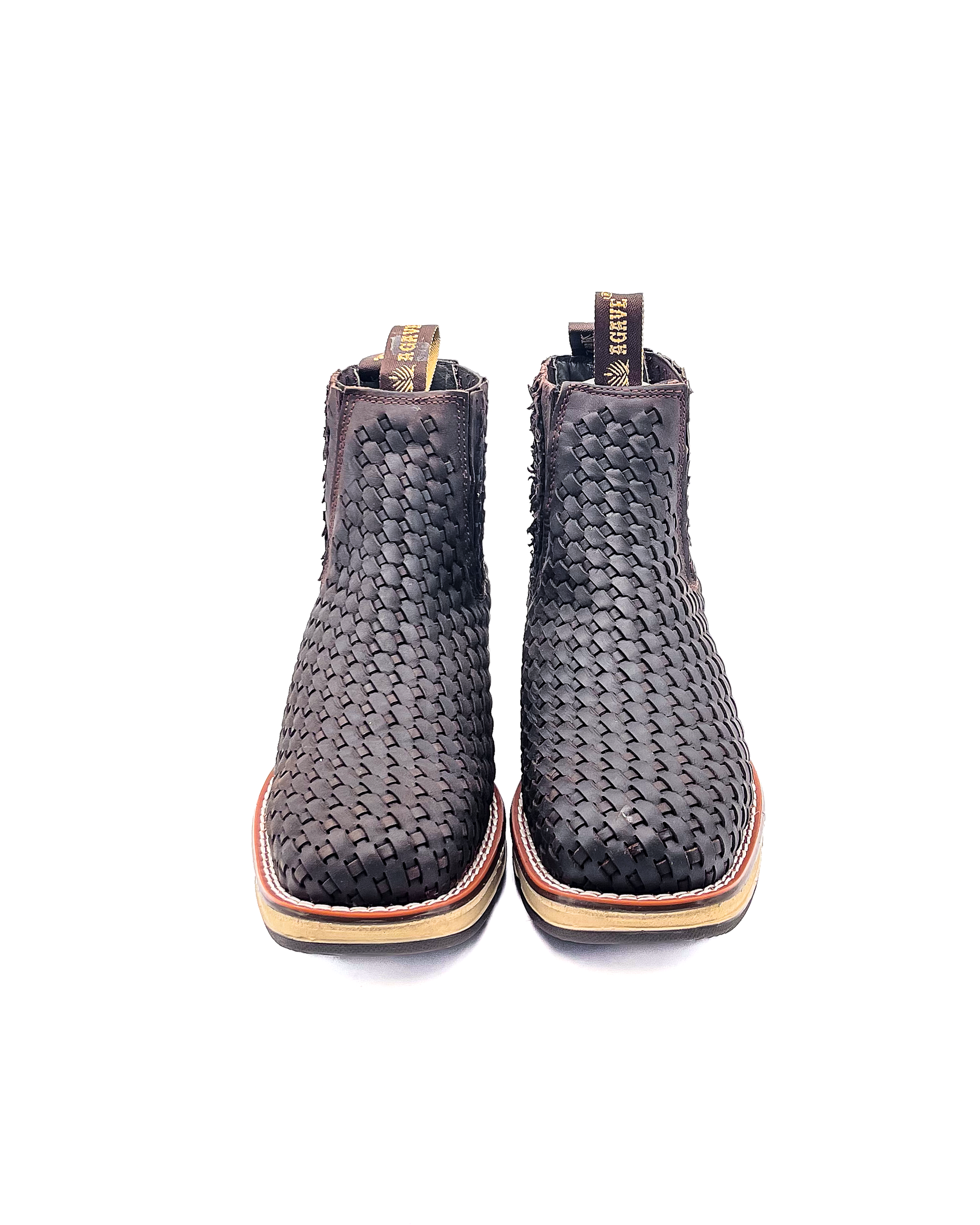 Nuestro exclusivo Botín Tejido Chocolate Suela de Hule No Casco elaborado en piel de res 100% original, con un diseño tejido artesanal que resalta por su estilo elegante y distintivo. Su tono whiskey le da un acabado sofisticado que combina perfectamente con atuendos casuales o de trabajo.